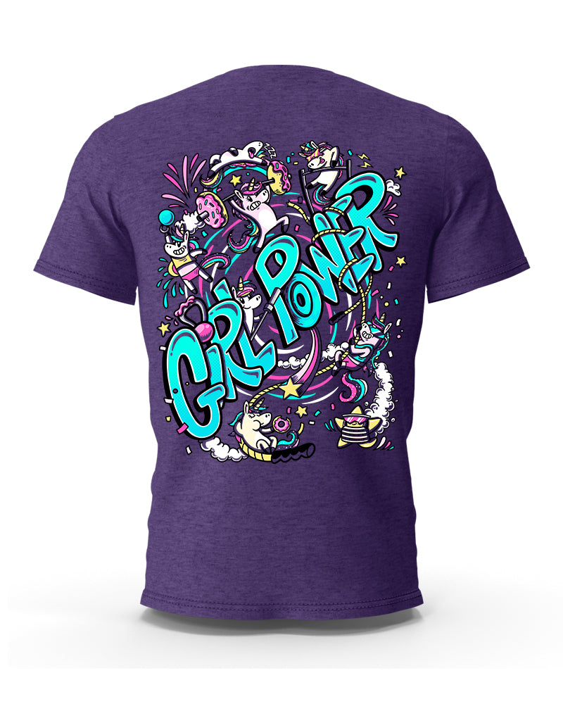 Lleva tu entrenamiento al siguiente nivel con nuestra camiseta "Girl Power". Diseñada para mujeres fuertes y determinadas, esta prenda combina estilo, comodidad y motivación. Nuestros unicornios te acompañarán en cada repetición con energía y actitud.